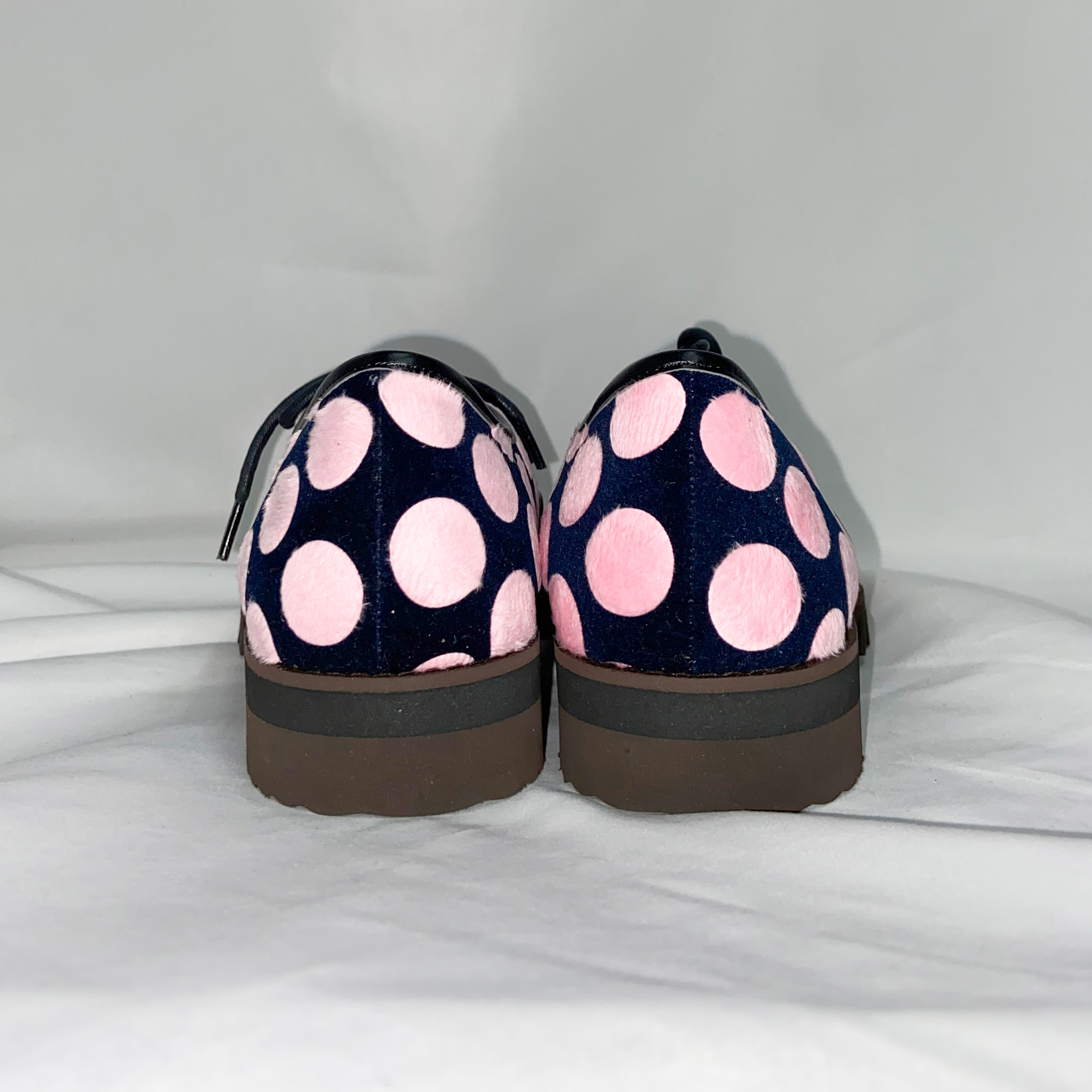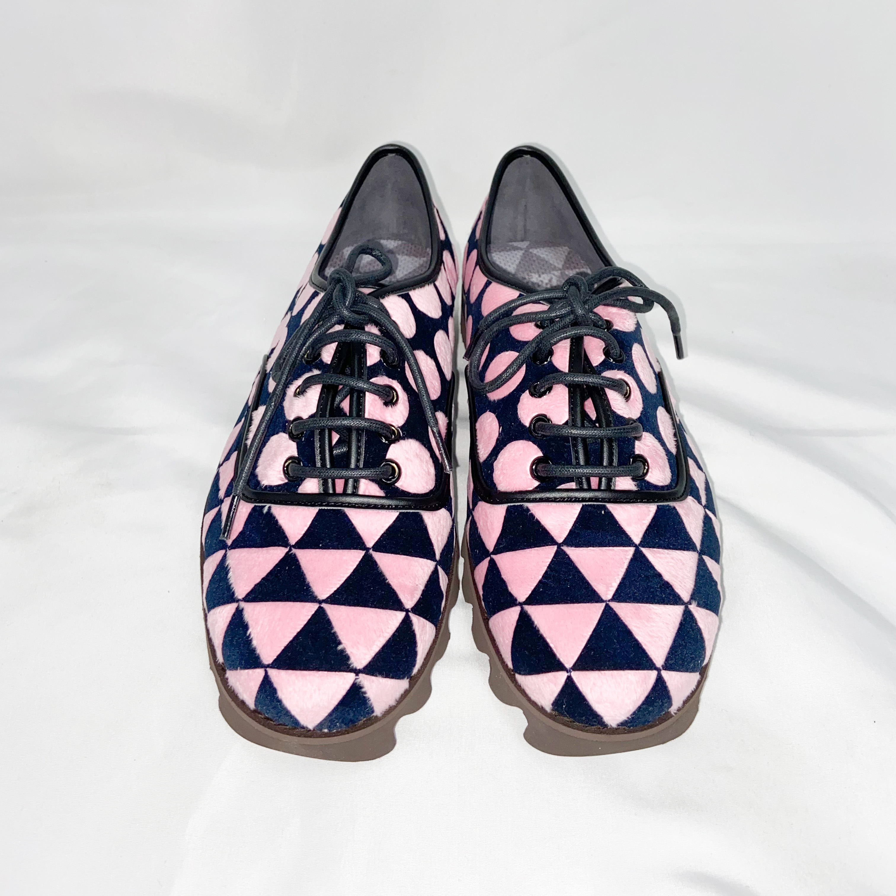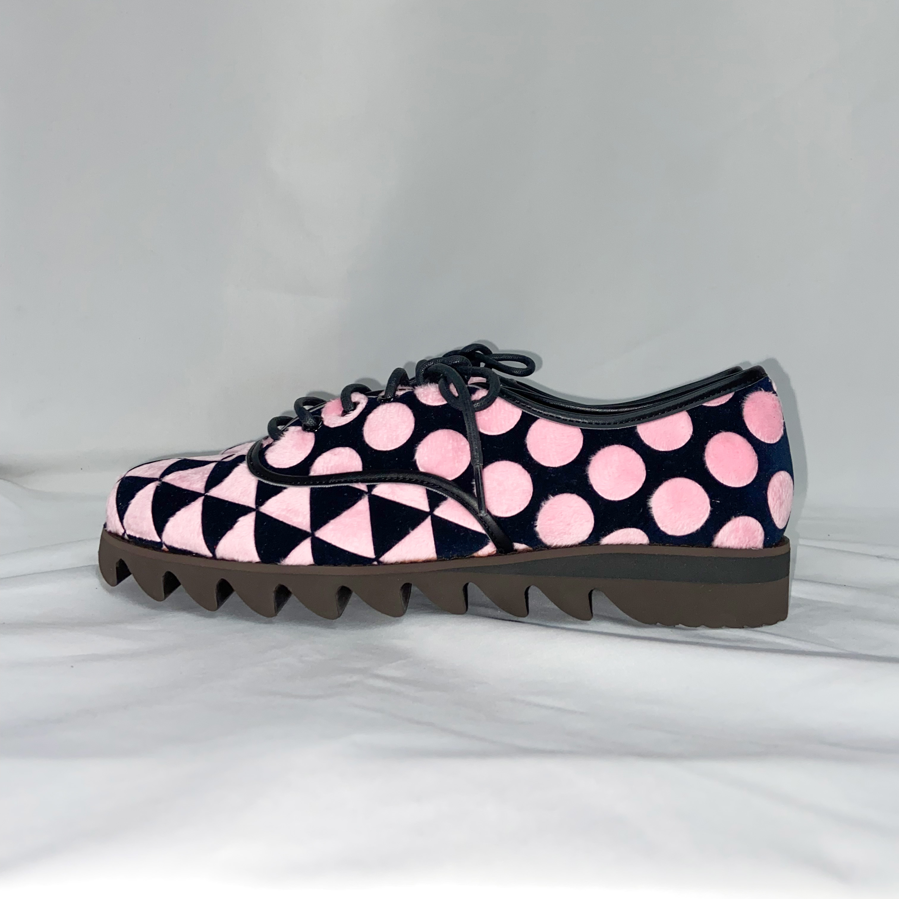 触り心地の良いファー生地にエンボス加工を取り入れたレースシューズ。