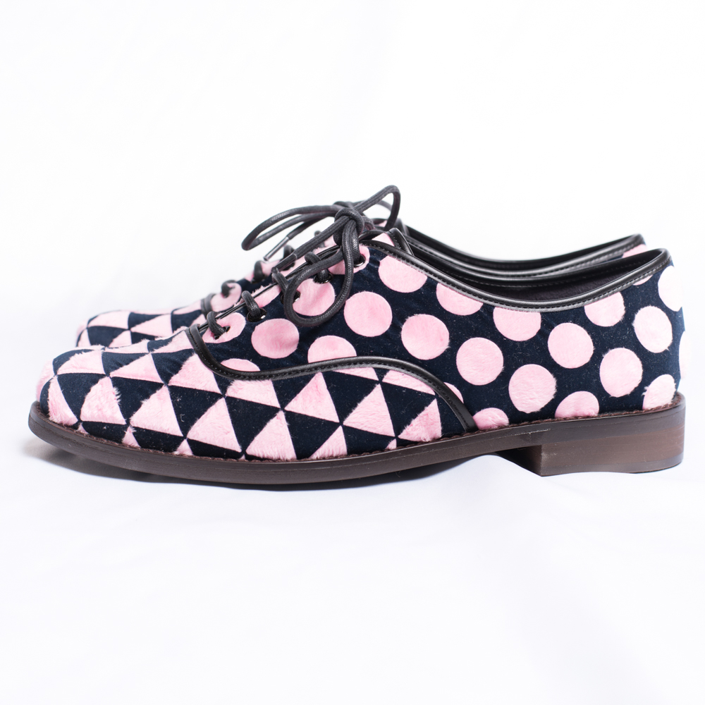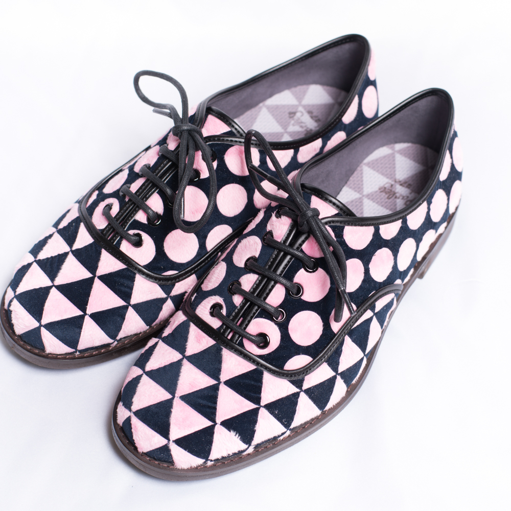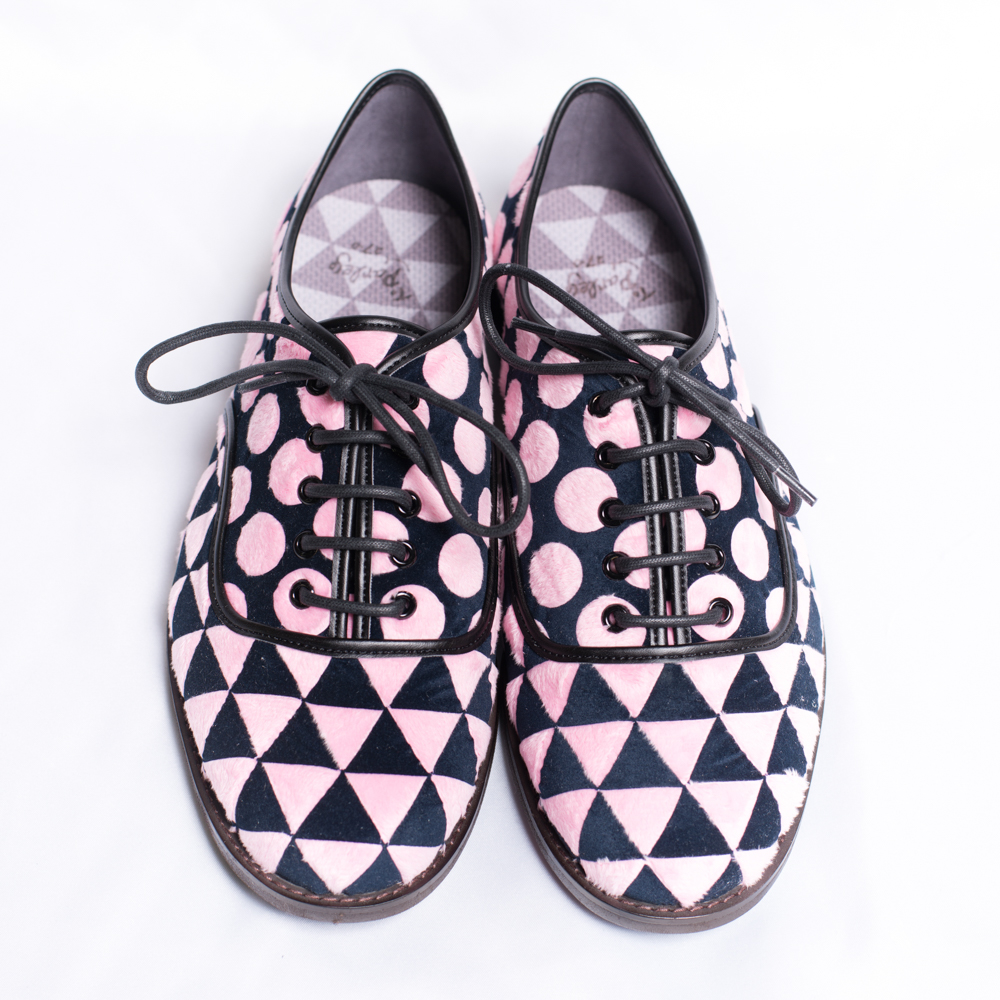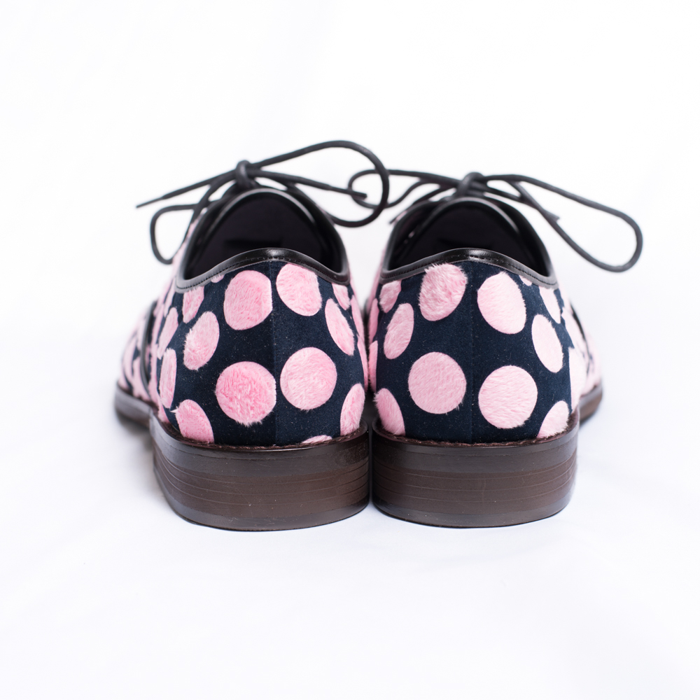 触り心地の良いファー生地にエンボス加工を取り入れたレースシューズ。