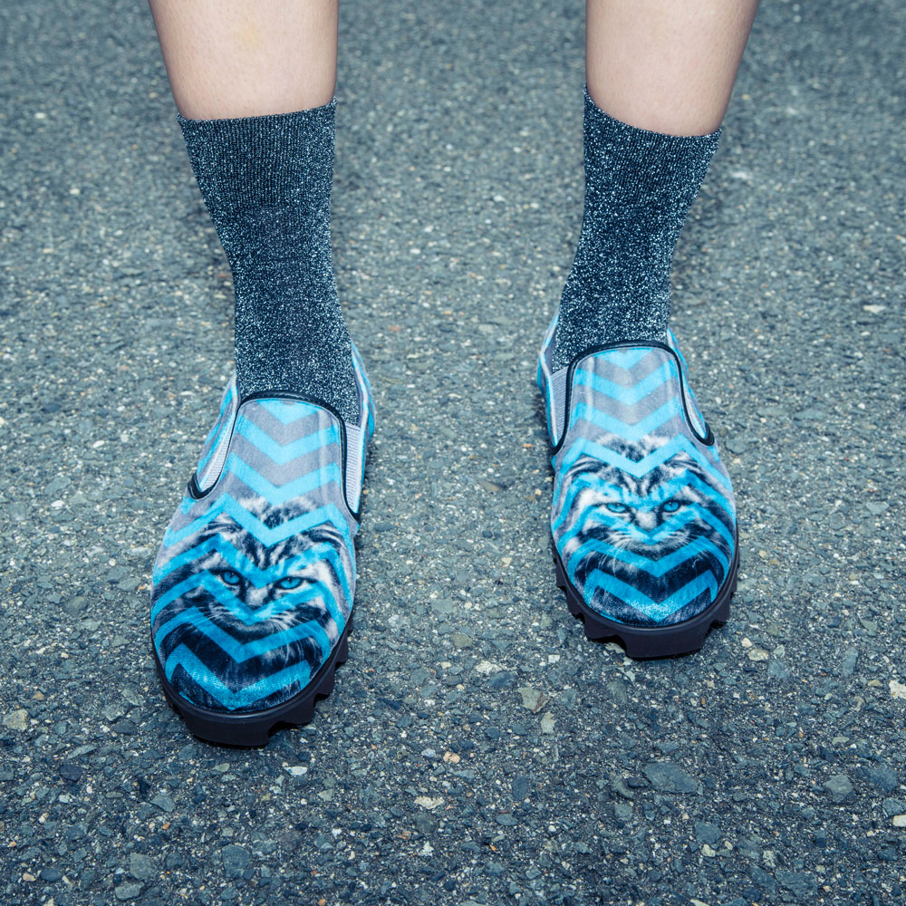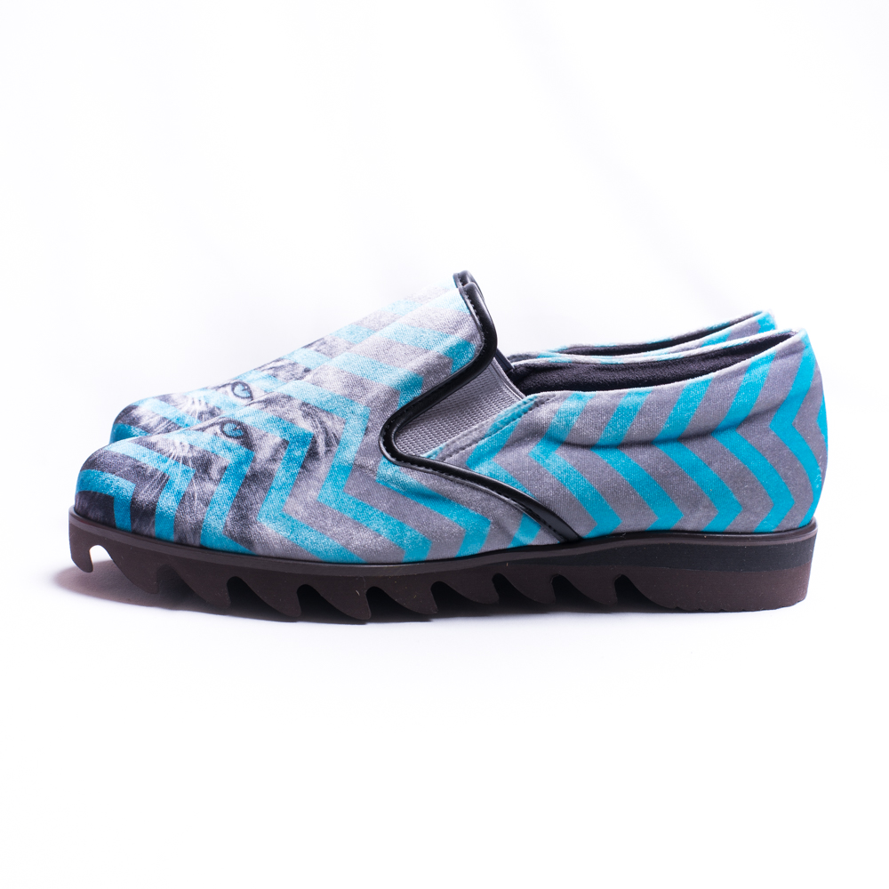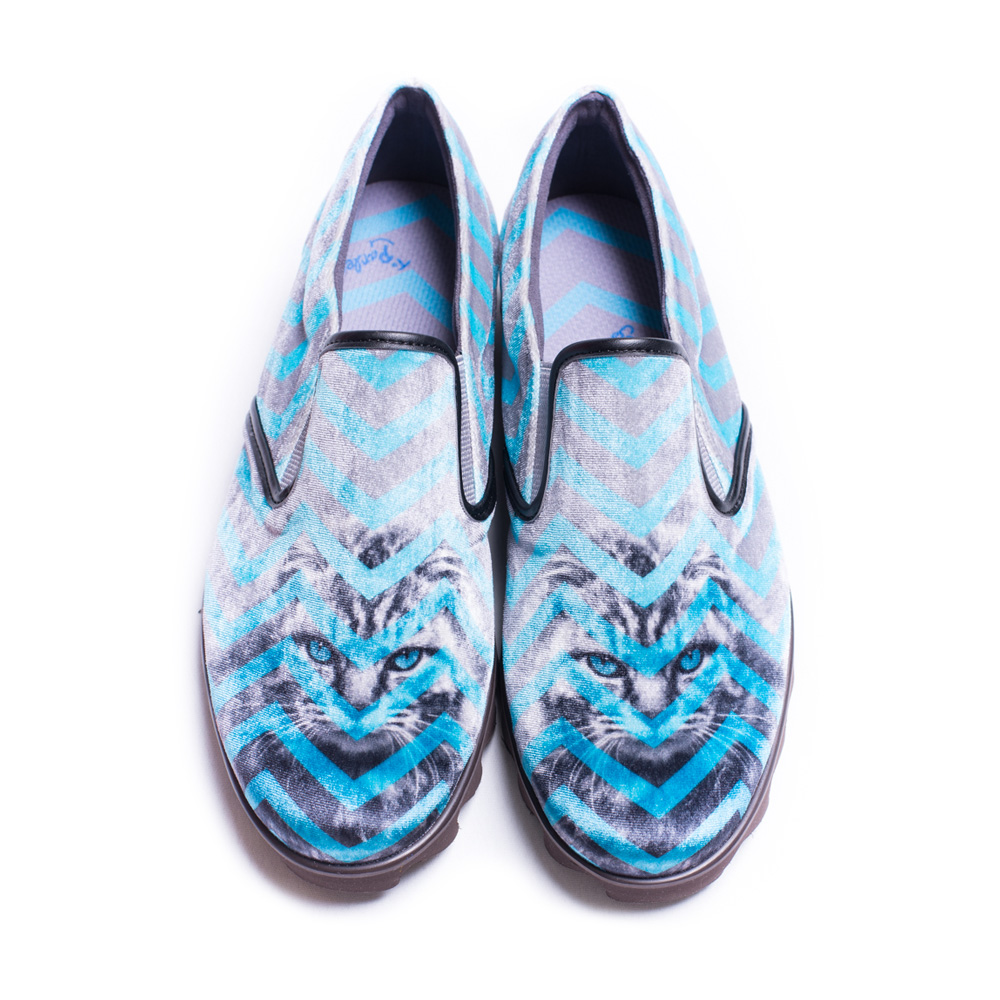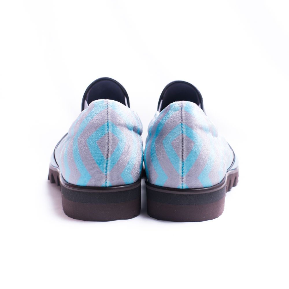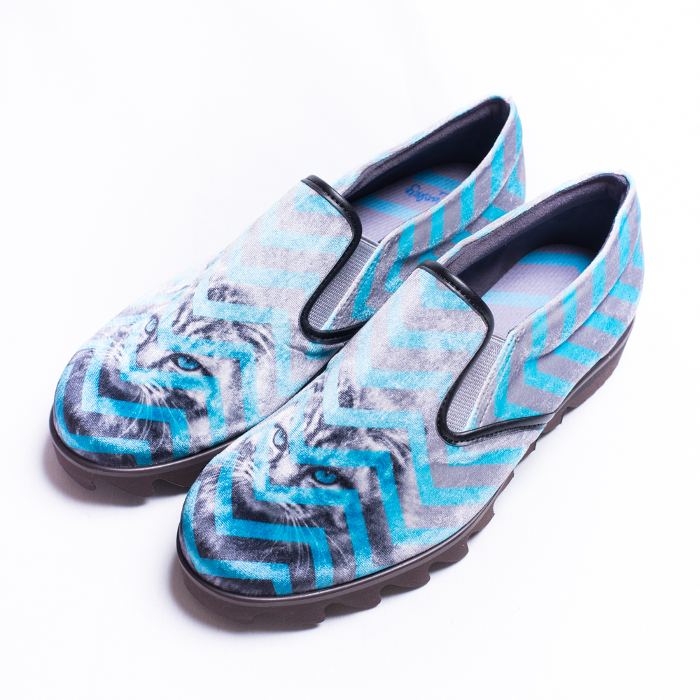 上品な質感のベルベットにプリントすることによって抜群に際立つシューズ。