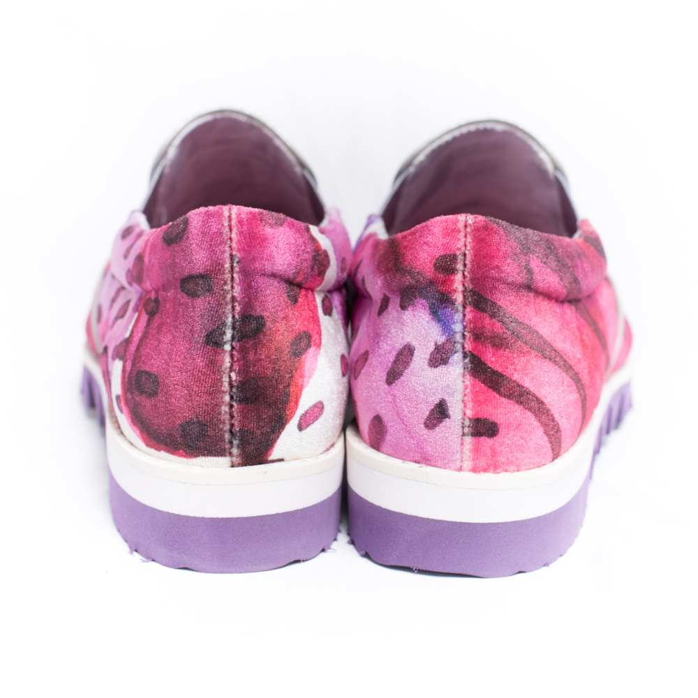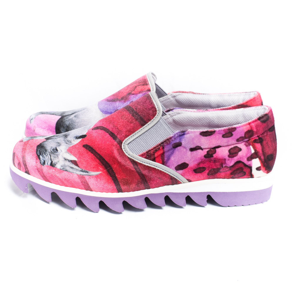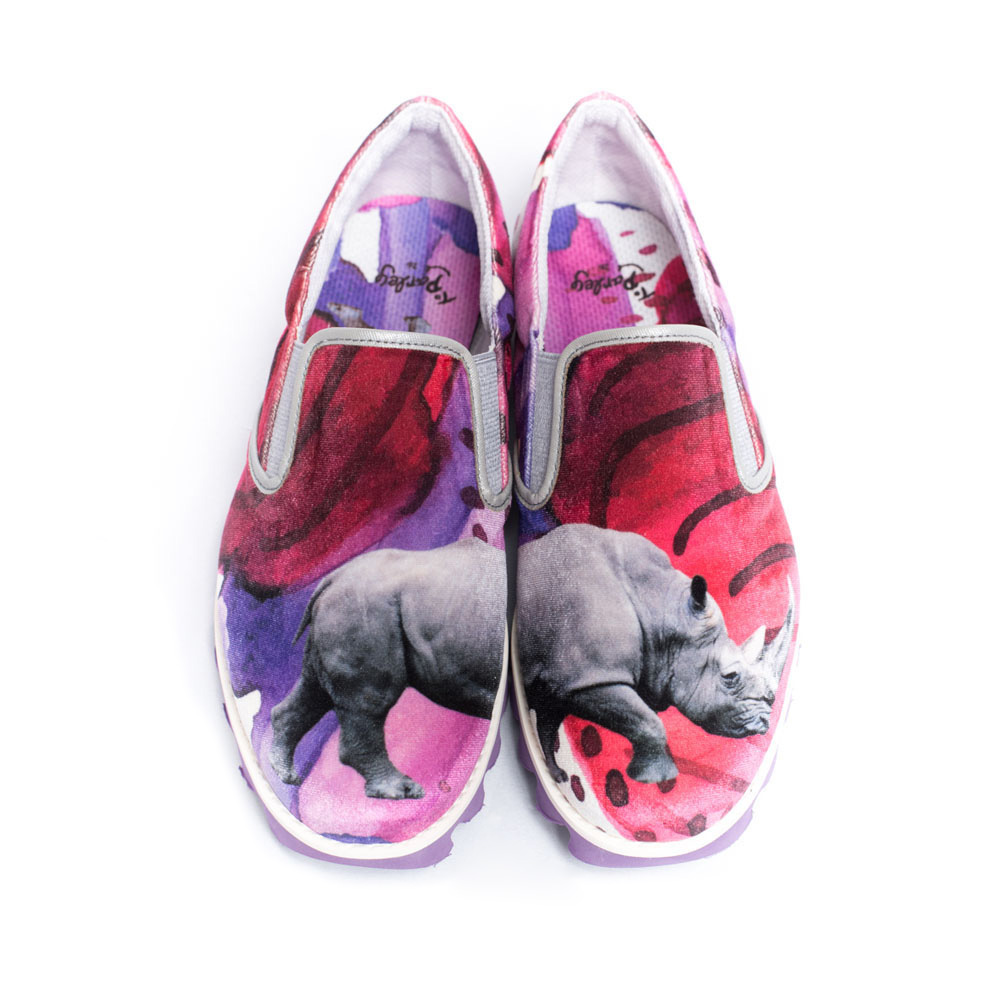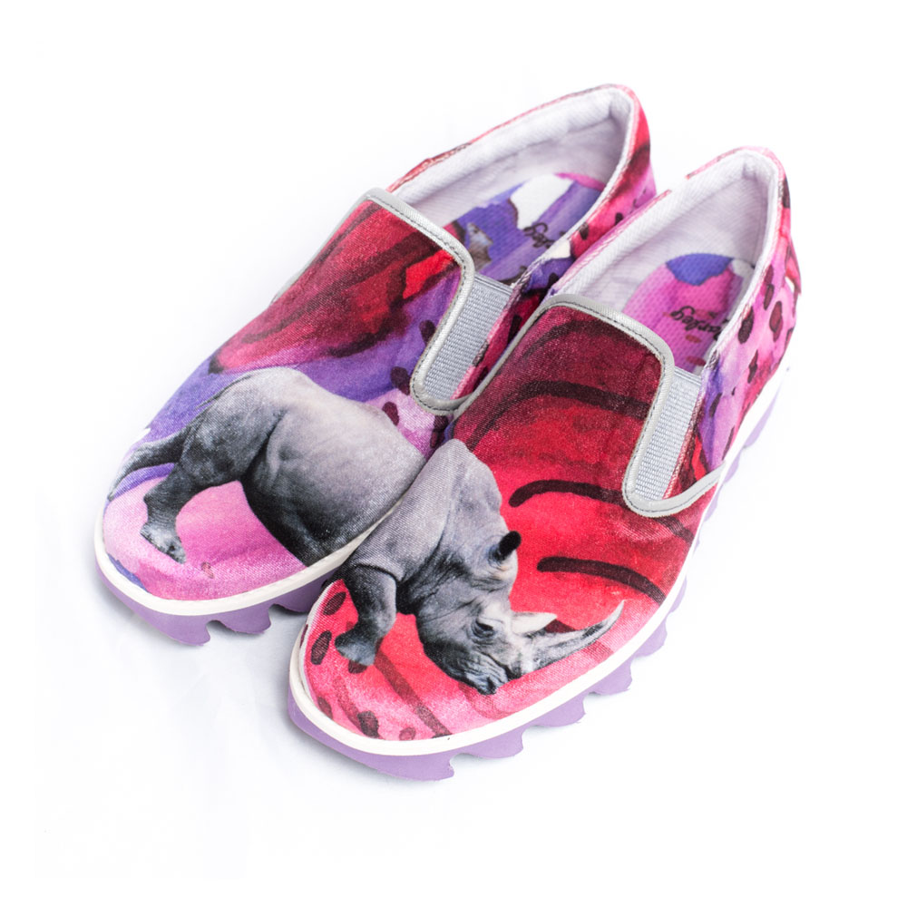 甲にサイが大きくプリントされたスリッポン。