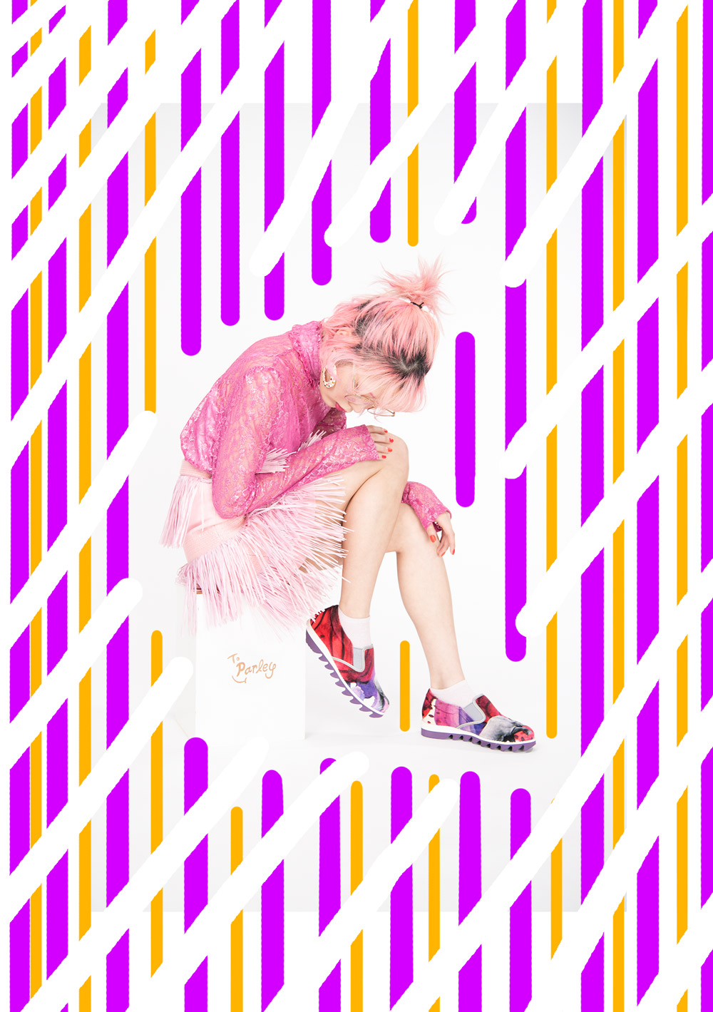 底のホワイト&パープルのツートンカラーも、ポイントの一つ。