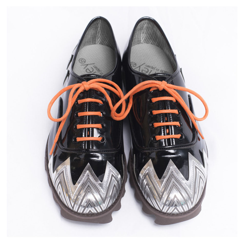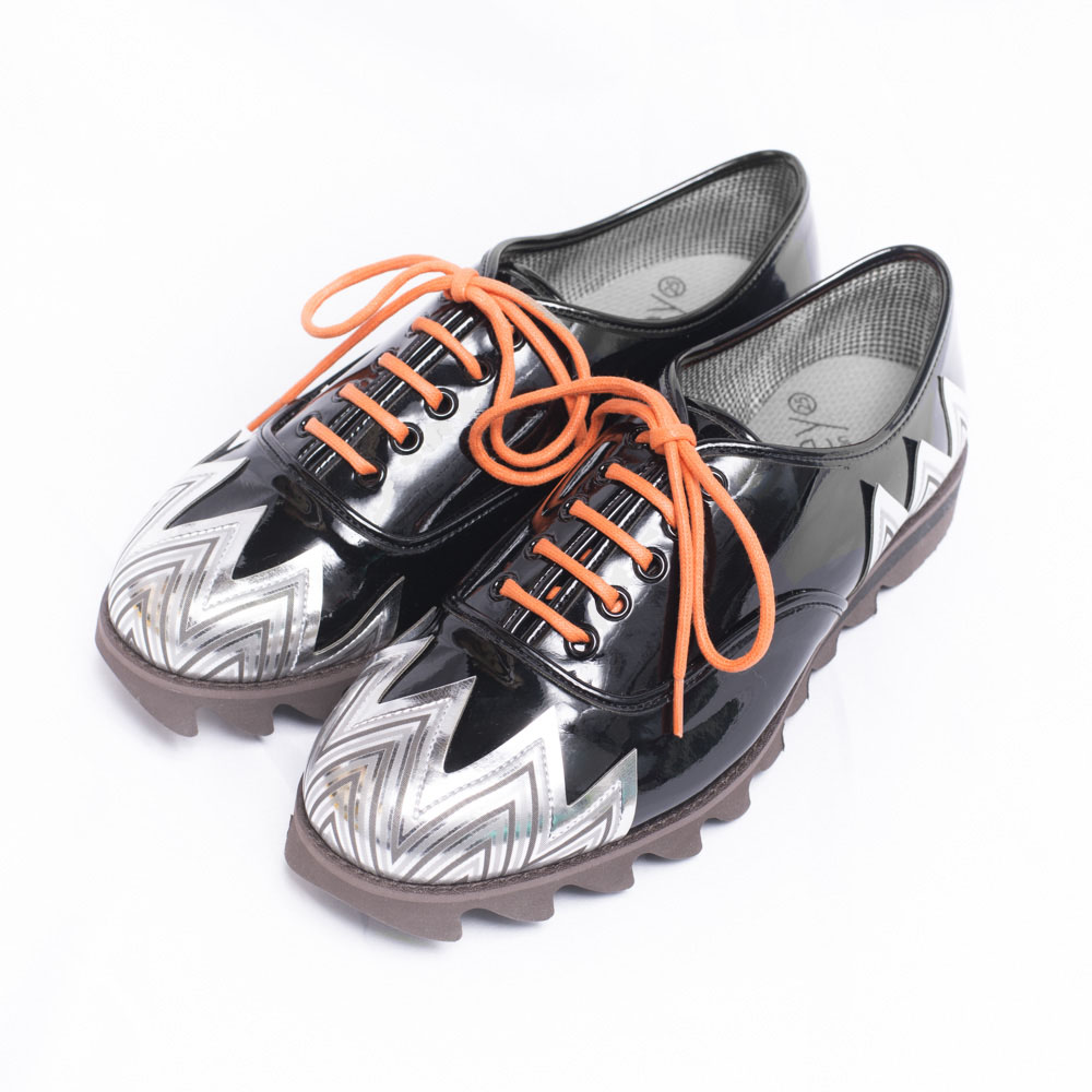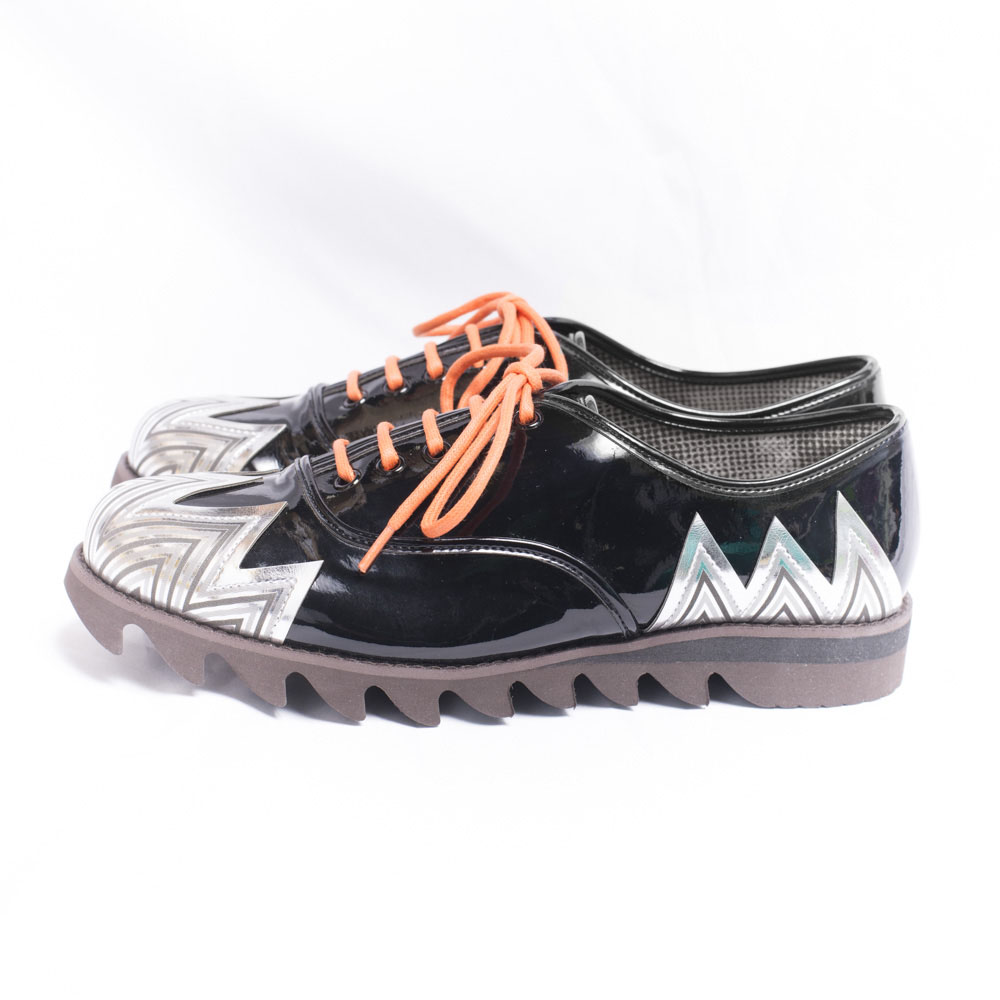 優しいフォルムに、尖ったラインを入れることでアンバランスさを出した1足。