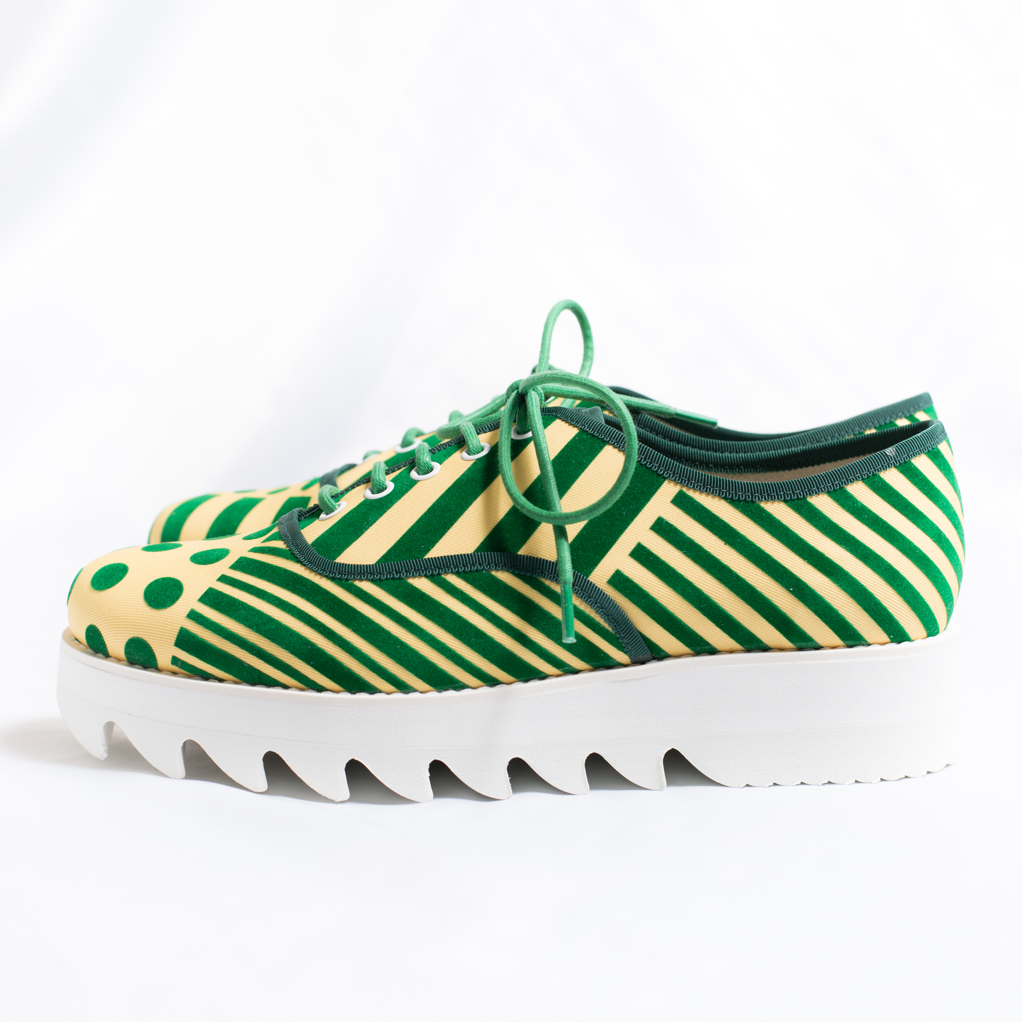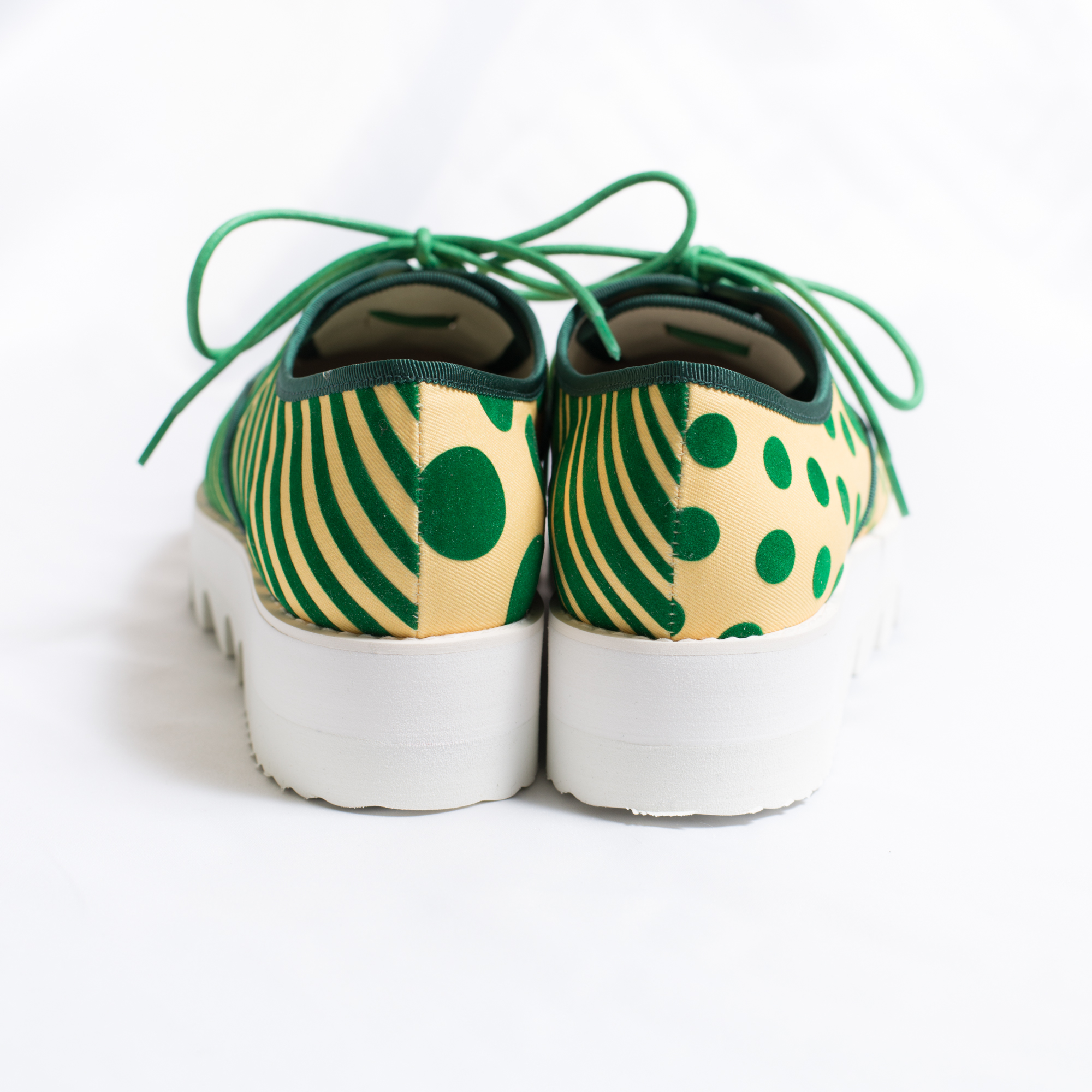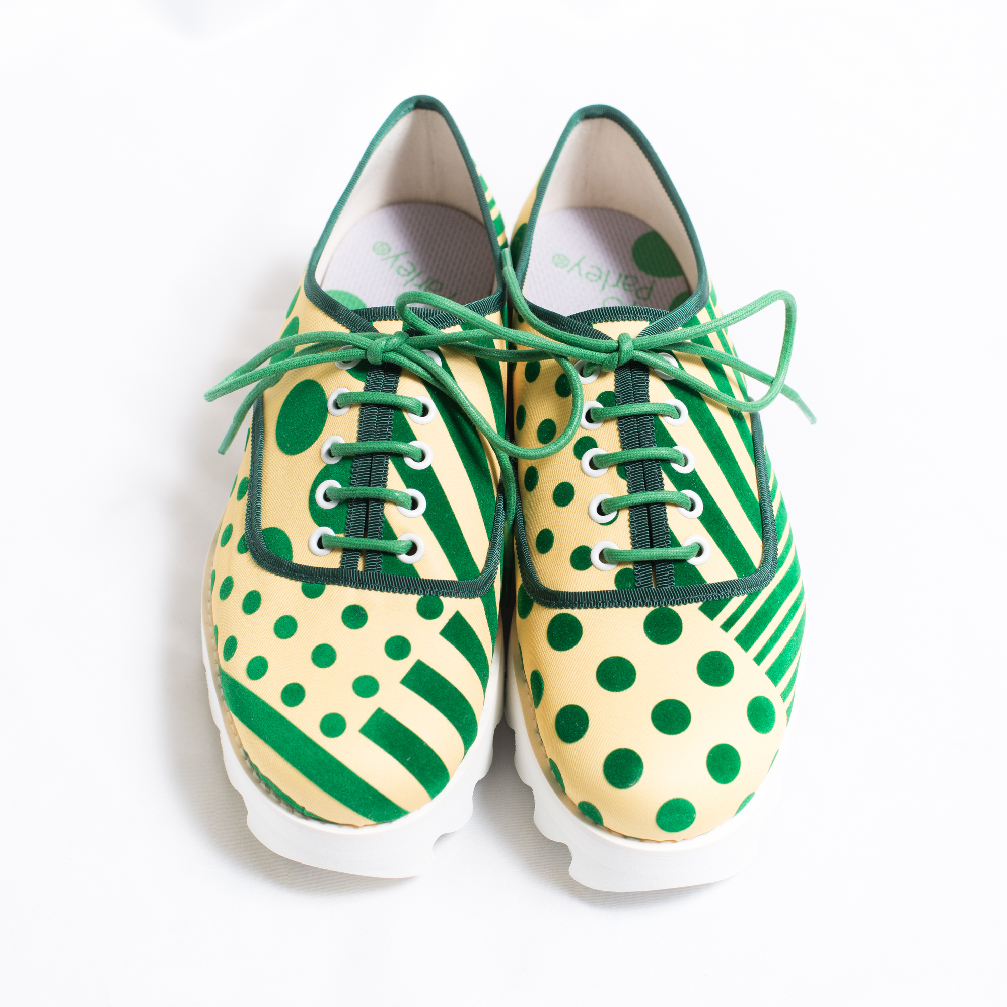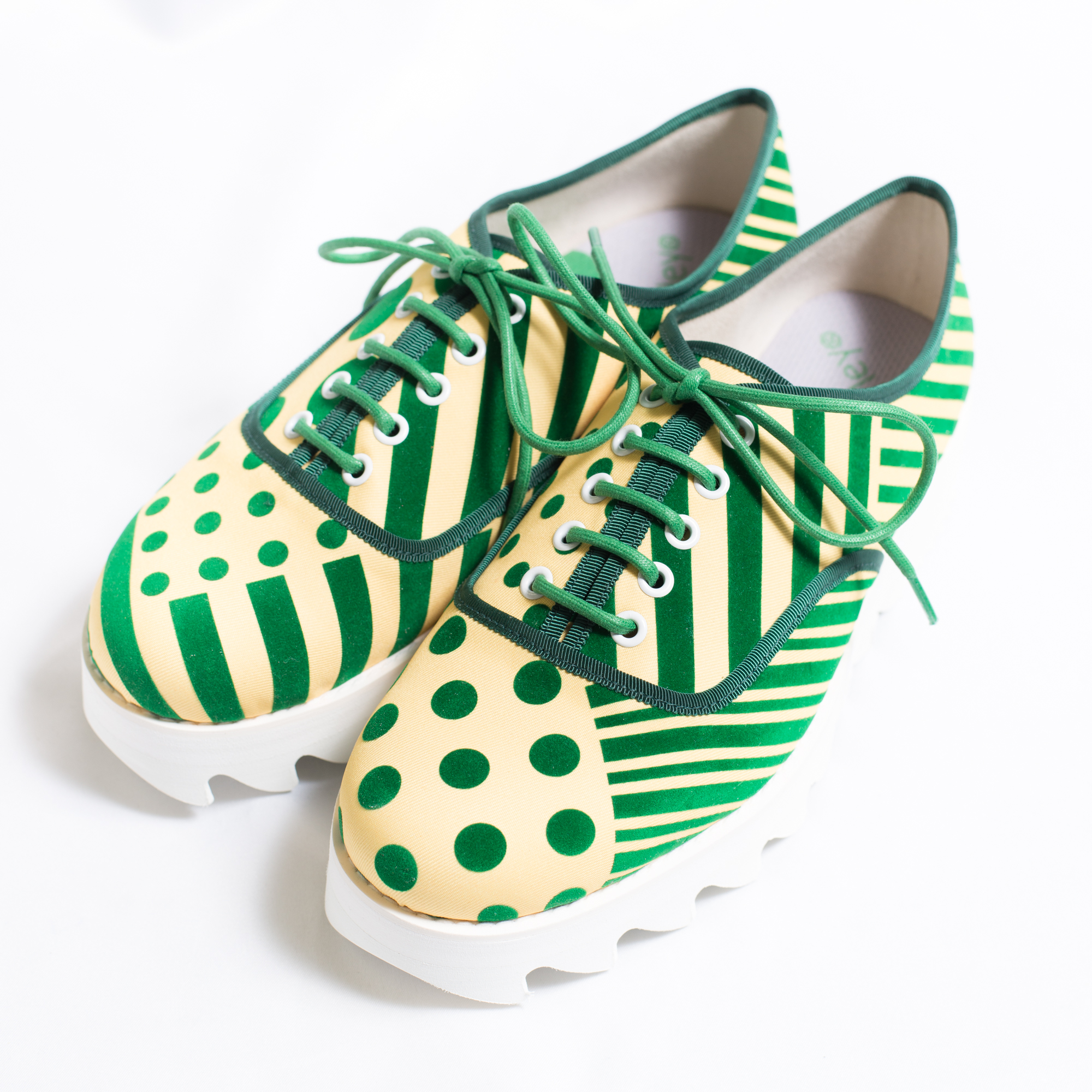ドットとストライプの柄は左右で異なったデザインとなっています。